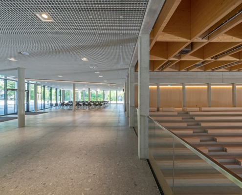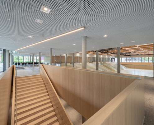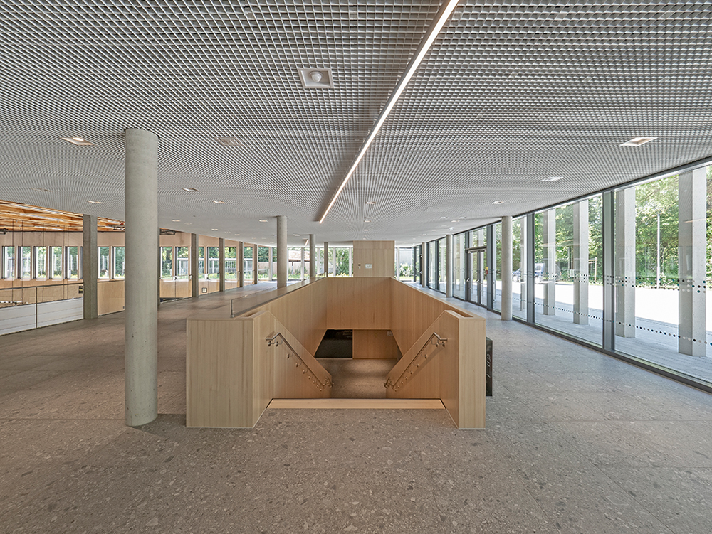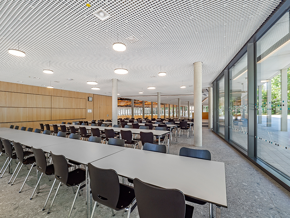 The system has been successfully used in the Erding multipurpose hall (MZH) project and meets the highest requirements for everyday school and sports use. Thanks to its tested ball impact resistance, Conturraster is ideal for sports facilities where ceiling surfaces are regularly exposed to mechanical stress.